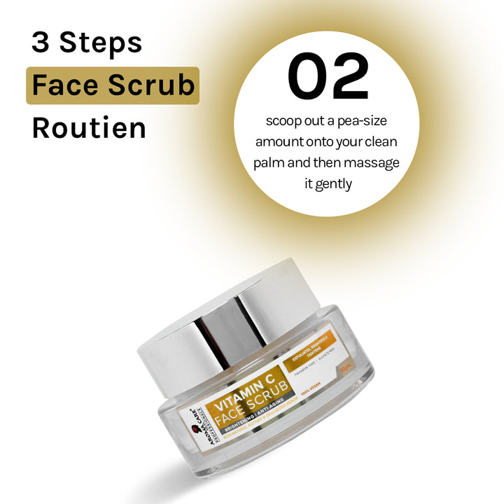 Enriched with the goodness and regenerating Properties of Vitamin C,the Aroma care Vitamin C Scrub is a gentle exfoliator This Vitamin C Based formula improves the skin's complexion and reduces signs of aging.Formulated with cellulosee beads,this brighteningscrub offers seamless buffing away of dead skin cells ,dirt,grime,and other impurities,it also improves skin's elasticity,collagen production and brightens the skin with the first application.