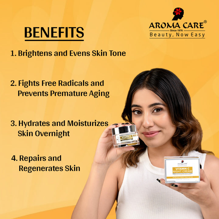 Professional Vitamin C Night Cream 50gm for Glowing Skin | Brightening & Anti-Aging Night Moisturizer with Hyaluronic Acid & Vitamin E