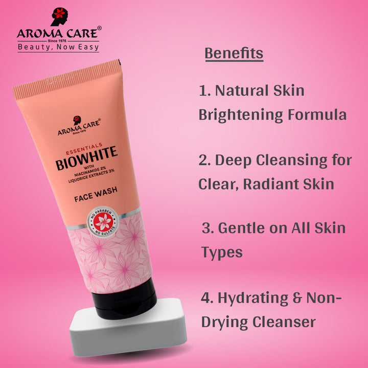 Aroma Care Bio White Face Wash : Cleanses Deeply Without causing dryness or irritation, controls melanin production. The result-Whiter, Brighter & Radiant skin. This formula is specially design for Oily & Combination skin types.