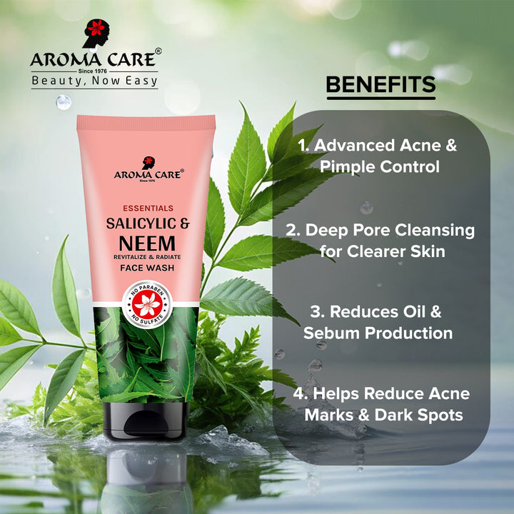 Essentials Salicylic & Neem Face Wash 50ml - With Neem Extract, Fights Breakouts & Reduces Redness